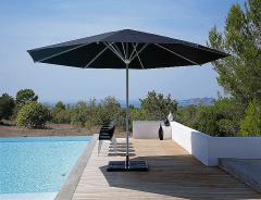 | - Ausgestattet mit einzigartigem Öffnungsmechanismus, nur einen Hebel umlegen und der Schirm öffnet sich in wenigen Sekunden - formschöne Bauteile aus hochwertigem Edelstahl - geschlossen braucht dieser Schirm so wenig Platz wie ein Mittelmastschirm - um 360° drehbar, ohne den Ständer bewegen zu müssen - Kranz aus schlagfestem Kunststoff oder aus massivem Aluminium erhältich - optional mit einer dekorativen Deckkappe erhältlich - in verschiedenen Größen und zwei verschiedenen Formen erhältlich - kann bis zu 9qm beschatten | Scheinbar schwerelos